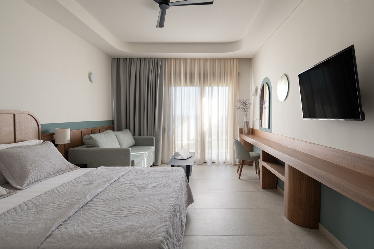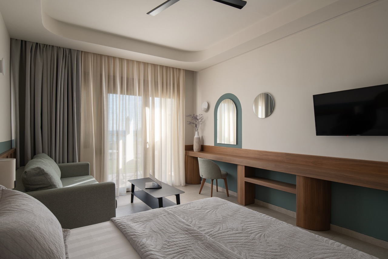 Junior SuitesWith awesome views to the beach and to Sunrise, to ground floor with garden, these suites are comfortable and modern, filled with natural sunlight and great facilities. You may enjoy the outdoor private balcony for an experience you will cherish forever, especially at sunset hour. There is a king size bed and the suites are perfectly equipped with all the details that will transform your stay into a magical one! They can accommodate 2 persons.