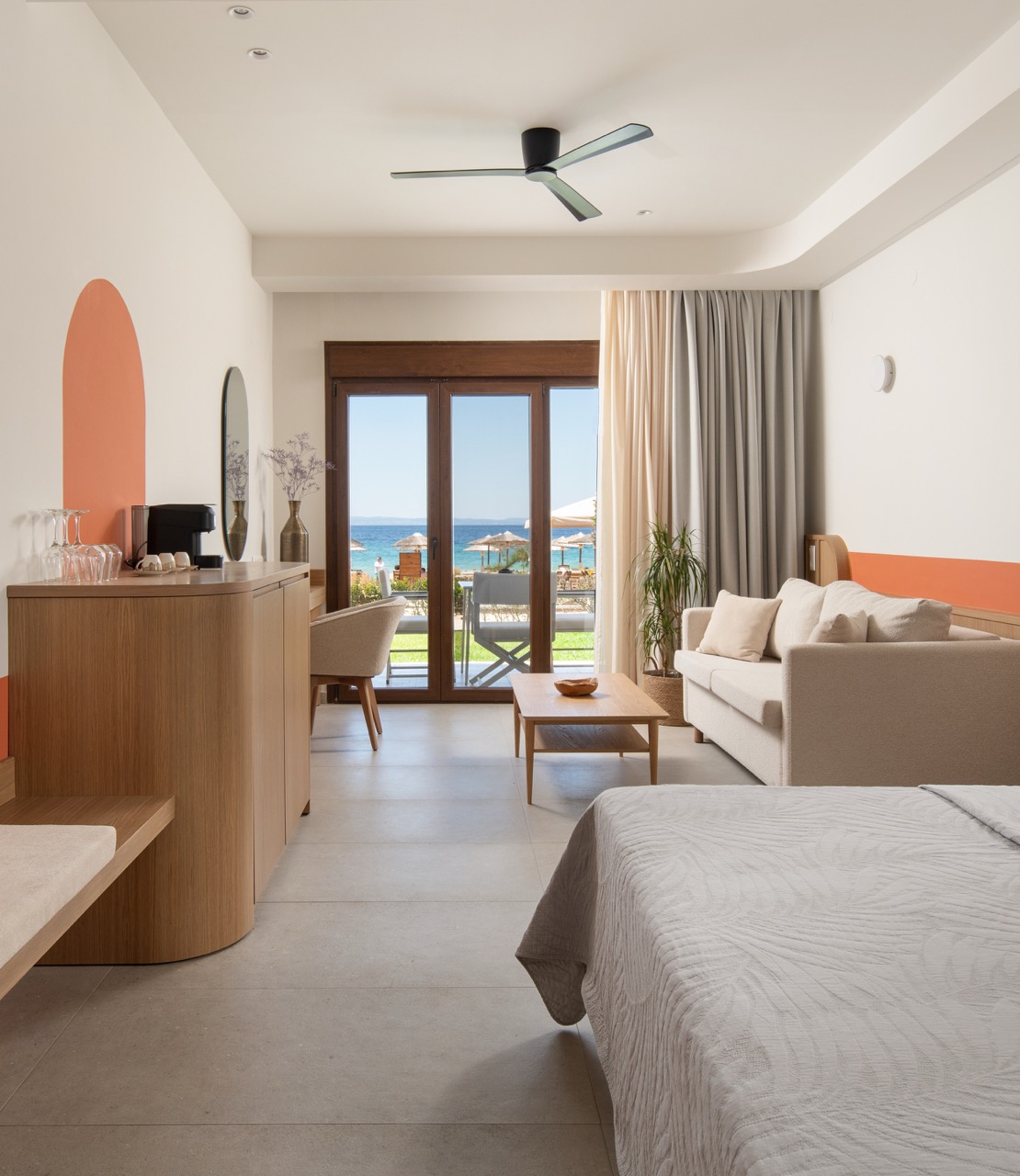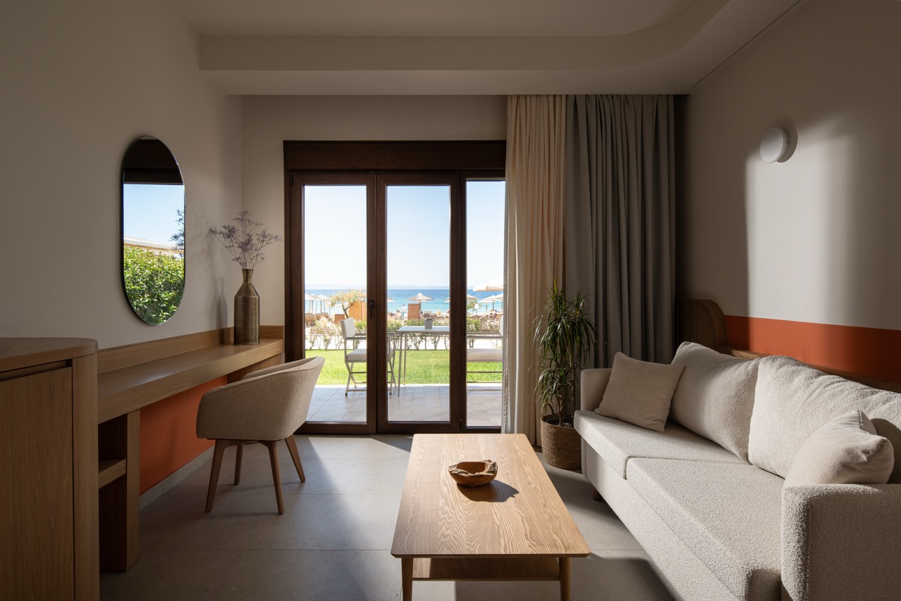 SuitesWith awesome views to the beach and to Sunrise, on ground floor with garden, these suites are comfortable and modern, filled with natural sunlight and great facilities. You may enjoy the outdoor private balcony for an experience you will cherish forever, especially at sunset hour. There is a king size bed and the suites are perfectly equipped with all the details that will transform your stay into a magical one! They can accommodate 2 adults and 2 children.